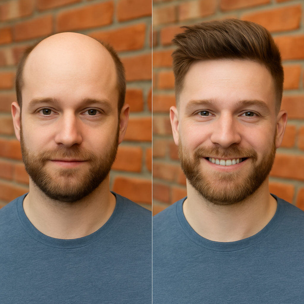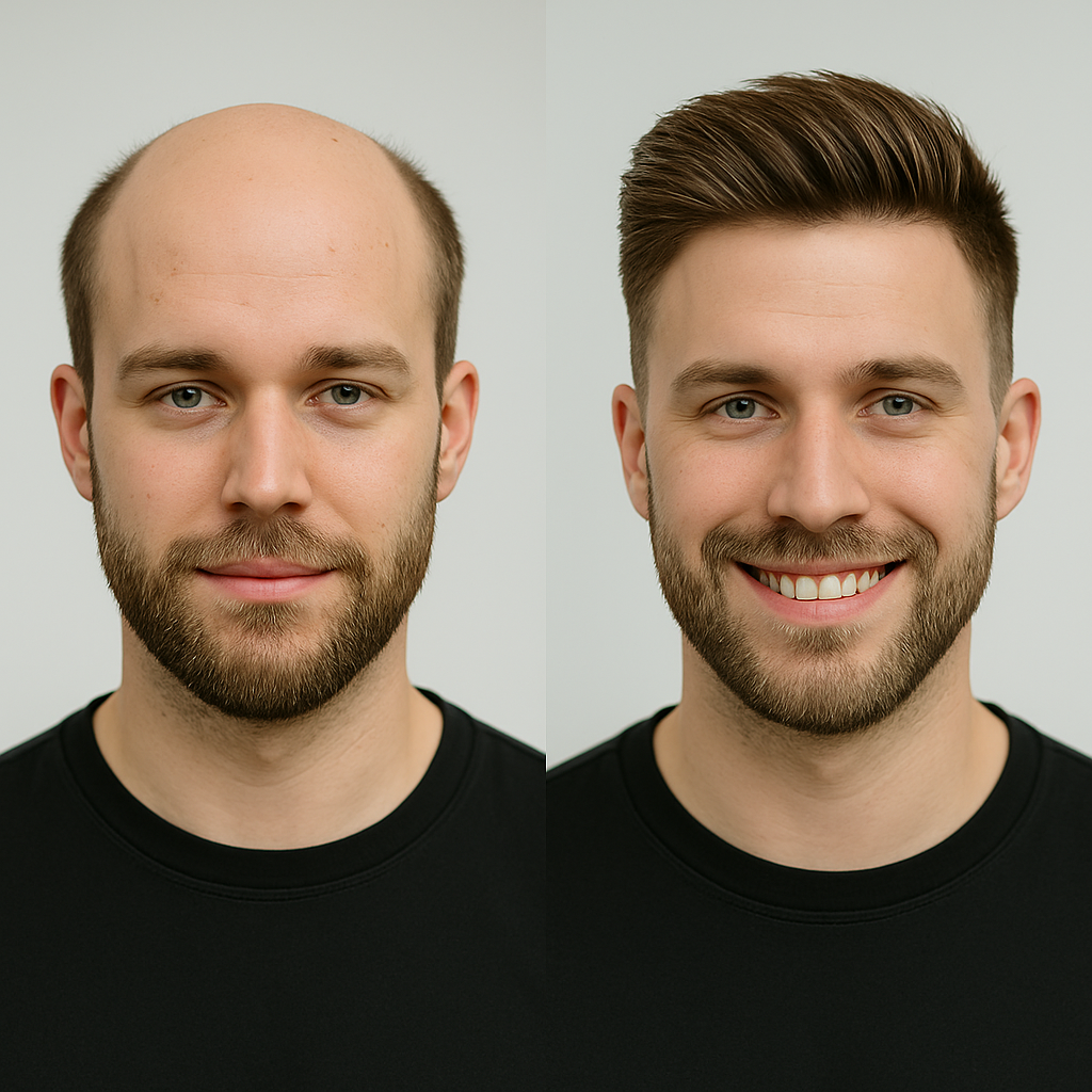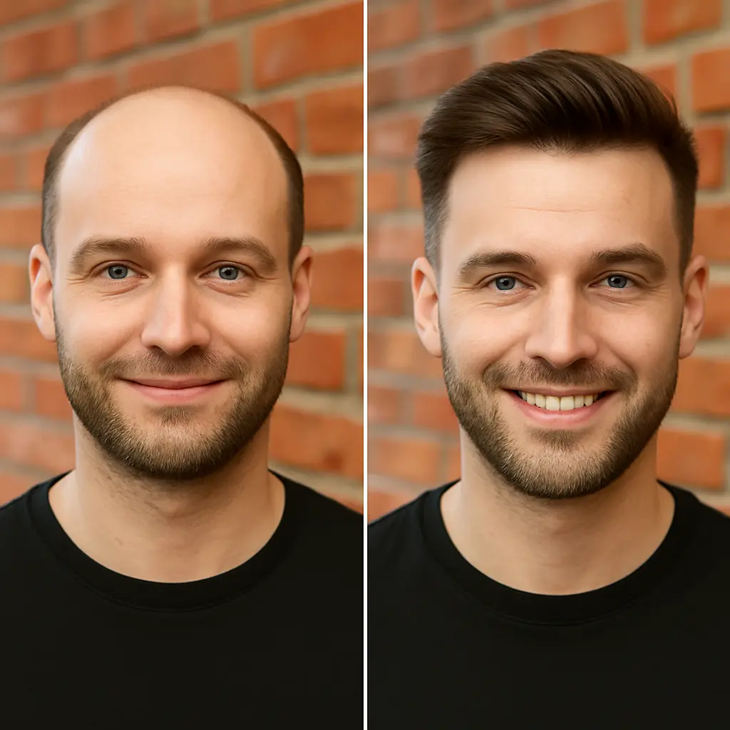 Nasza metoda to bezinwazyjna alternatywa dla przeszczepu włosów. W zaledwie kilka godzin zyskujesz naturalny wygląd i pewność siebie – bez bólu i bez długiej rekonwalescencji.