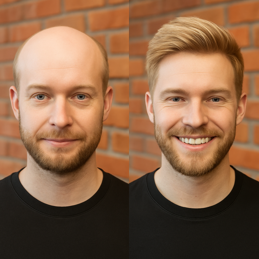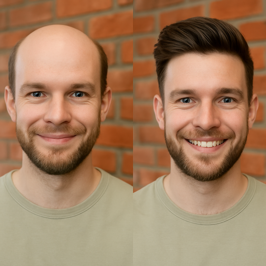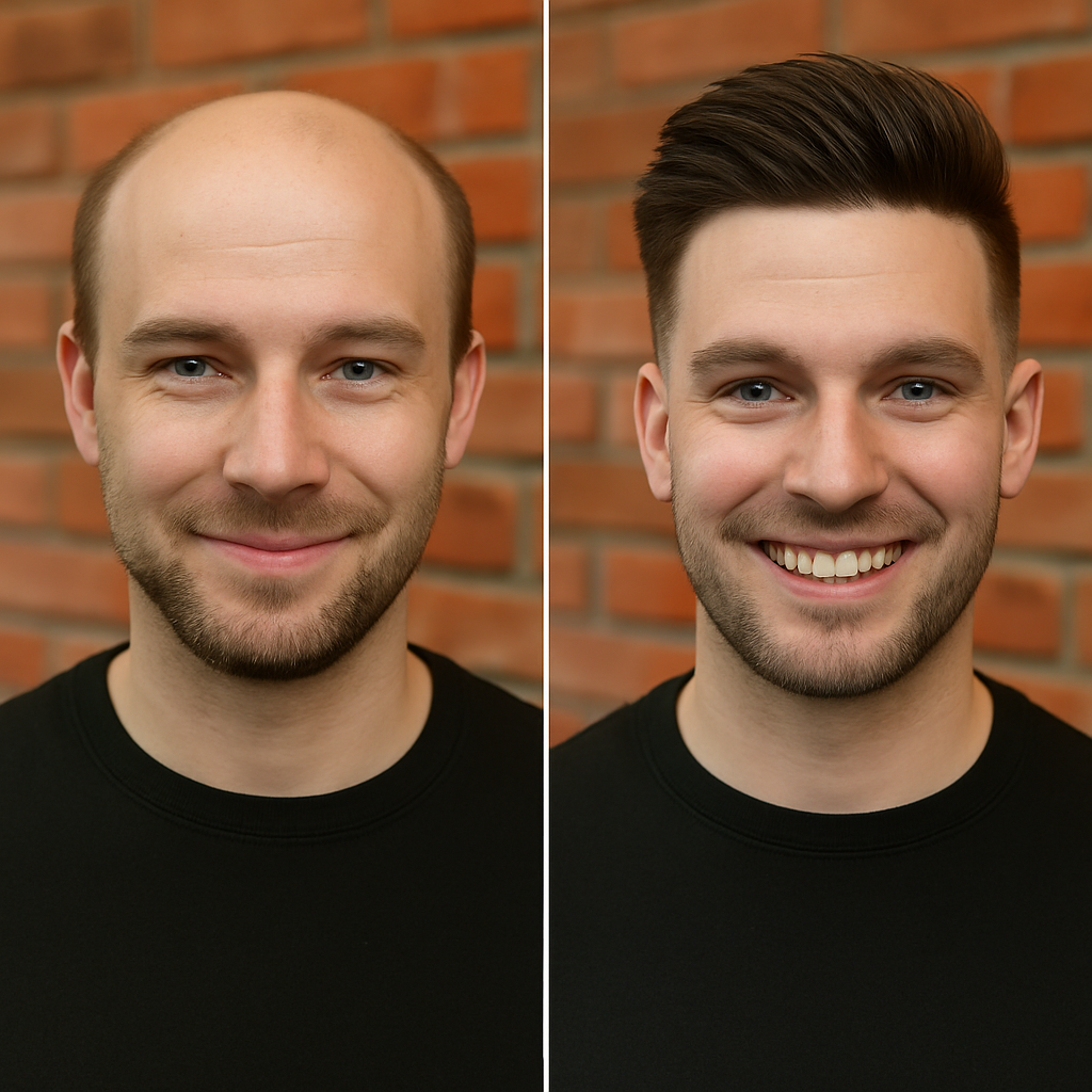 Nasza metoda to bezinwazyjna alternatywa dla przeszczepu włosów. W zaledwie kilka godzin zyskujesz naturalny wygląd i pewność siebie – bez bólu i bez długiej rekonwalescencji.